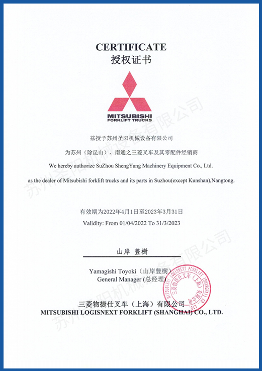 蘇州圣陽機(jī)械設(shè)備有限公司是一家專業(yè)從事叉車銷售,租賃和維修等服務(wù)的物流倉儲設(shè)備供應(yīng)商,成立于2009年2月23日。是三菱叉車授權(quán)的一級代理商。