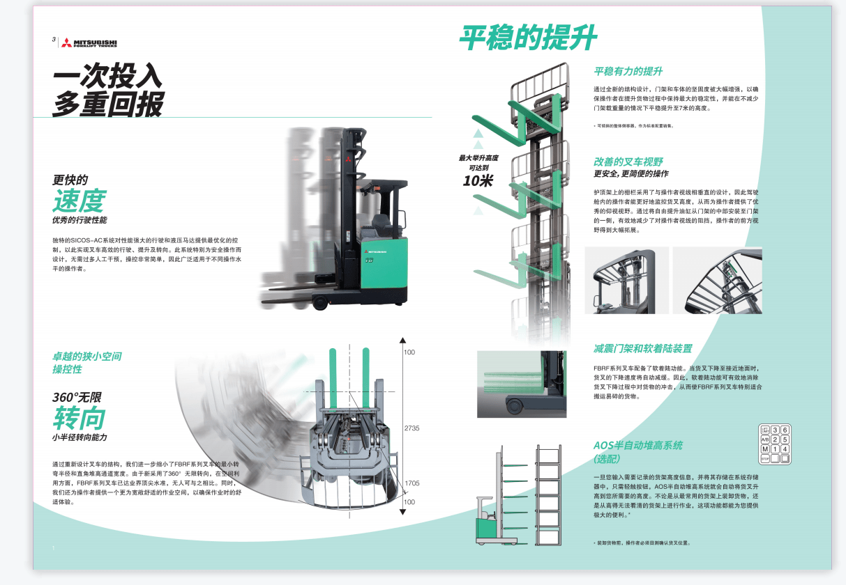 三菱叉車 FBRF系列前移式叉車 經濟實惠既經濟實惠,又綠色環保的叉車 才是值得您投資的明智之選由電力驅動的電瓶叉車在前期的購買成本可能相對會略高,但從長遠角度來看,電瓶叉車絕對值得這樣的投資。一般而言,從投資回報的角度出發,電瓶叉車遠比使用汽油或...